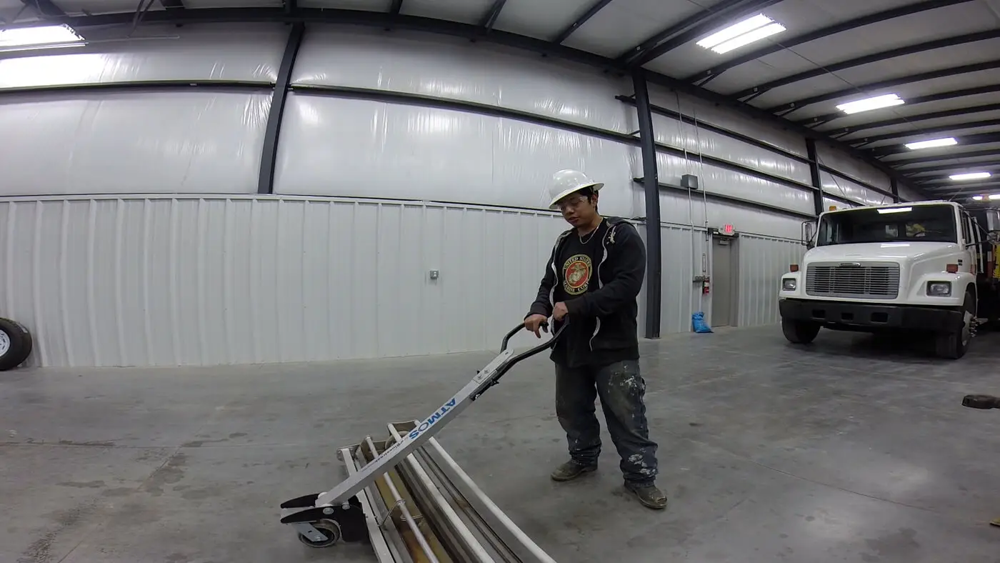 El Atmos La barredora magnética es una barredora de descarga continua diseñada para recoger granalla de acero y cubrir grandes áreas rápidamente. Tiene el mayor ancho de barrido, 50 pulgadas, y dos bandejas para residuos con capacidad para 84 libras de granalla.