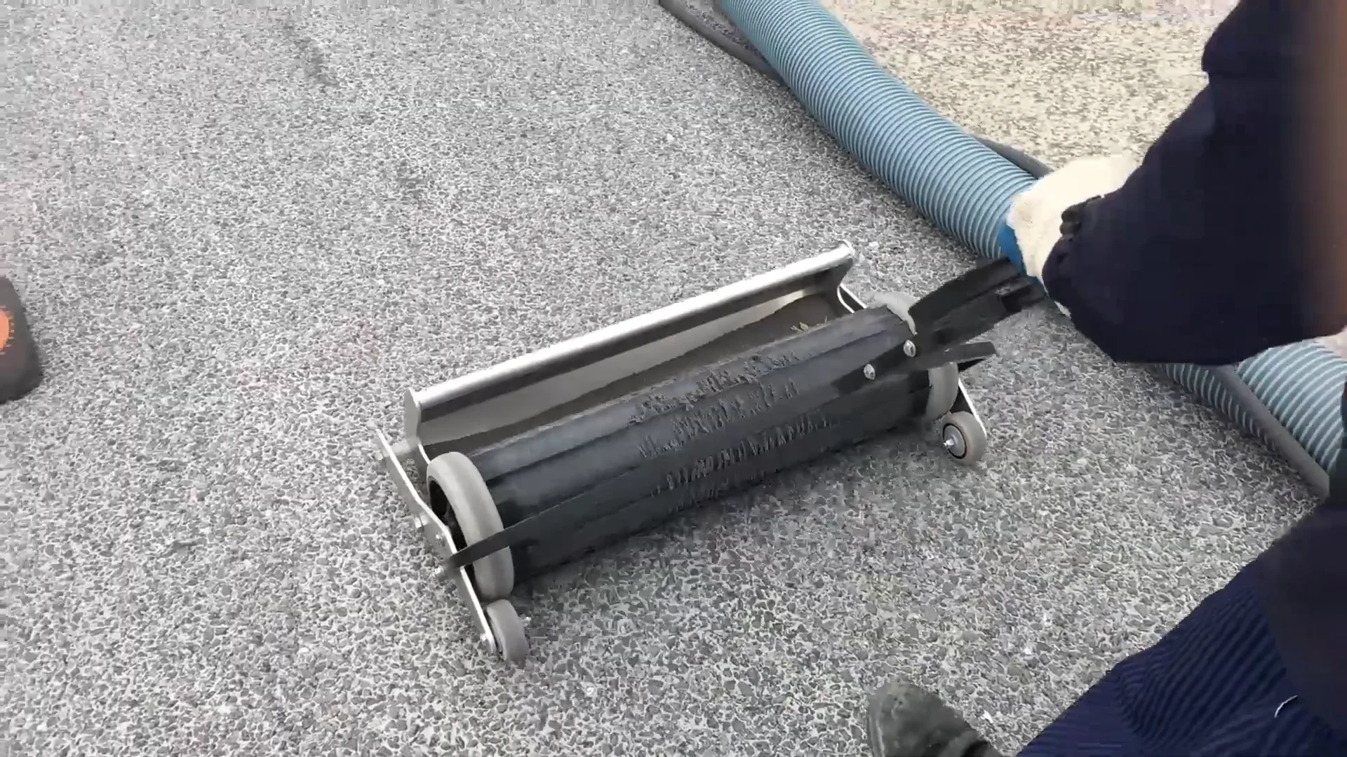 El Edger XL Los accesorios funcionan de manera similar al más pequeño. Edger pero con más potencia de imanes y un tambor giratorio más grande. El Edger XL utiliza imanes de tierras raras para alejar los granos de las paredes y los bordes de las áreas que han sido granalladas. Hay una rueda de caucho termoplástico en el Edger XL’El tambor que se desplaza por la pared para girar las aletas de la parte inferior de la carcasa del imán Edger y lanzar el disparo hacia la trayectoria del Quantum conjunto de barrido principal que se va a recoger. El Edger XL Cuenta con una rueda giratoria para facilitar las maniobras y mantener una altura de barrido fija para una máxima recogida de residuos. También se puede levantar y apartar cuando no se necesita para facilitar su transporte y almacenamiento.