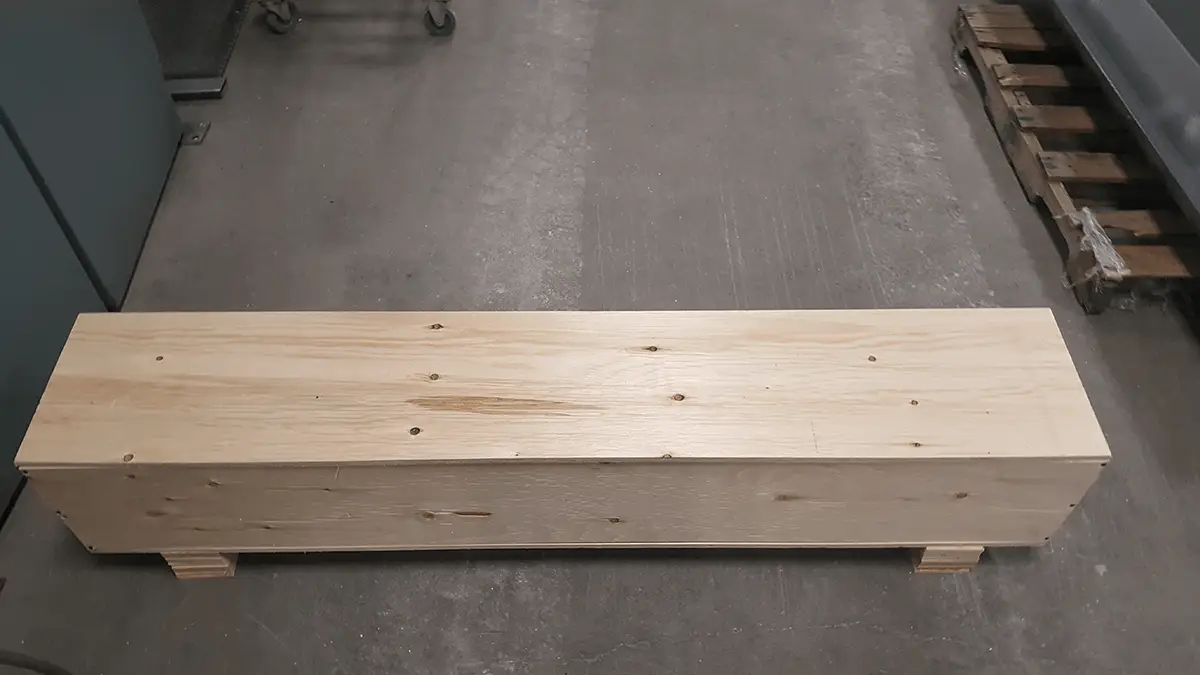 Packages the Eiger in a steel frame crate with plywood sides to conform to ISPM-15 wood packaging requirements. It ensures packaging can withstand the rigors of international ocean freight.